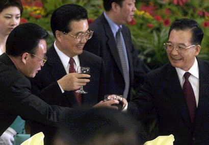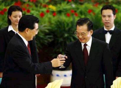 尽管中国有太多的事情要解决,但对胡温来说,不搬倒江泽民,那什么问题也等于没有解决。从胡温上台这样的精神面貌哪里见过?胡锦涛不是皱着眉就是苦着脸,真让人心情沉重。但今年的国庆招待会,他和温家宝举杯庆贺的欢愉让人感到真的是发自心底的,是不可掩饰的!连旁边的女服务员都被感染。