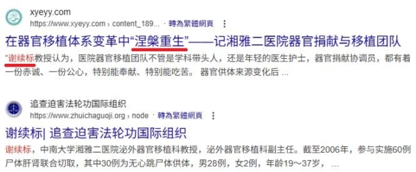 罗帅宇的导师谢续标是湘雅二医院泌外器官移植科副主任,是海外追查迫害法轮功国际组织通报的涉嫌活摘器官的医生之一。目前网上有关他“涅槃重生”研究课题的信息,已被删除殆尽。但仍能找到蛛丝马迹。