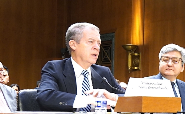 2025年11月20日,美国国务院前国际宗教自由大使布朗巴克(Sam Brownback)作为证人,受邀参加美国国会及行政当局中国委员会(CECC)举行的有关宗教自由听证会。(大纪元)