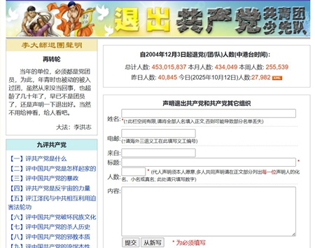 于朦胧坠亡案的背后黑幕,也引发大量中国民众震惊,因此纷纷在海外退党网站发表“三退声明”,宣布退出中共党、团、队组织。