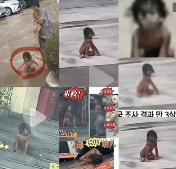 10月16日,有网友在四川一高速路服务区拍到一个全身赤裸小孩,像狗一样在地上爬行、啃食,之后,又有多个路人在其它地方拍到该小孩,全是赤裸身体,从未见穿过衣服,即使在冰冷的冬季,也是全身赤裸,引发全网关注。