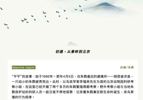 1986年4月9日,“平平”在最后的避难所——陕西省洋县破壳而出。同年5月17日,朱鹮“平平”到了北京。